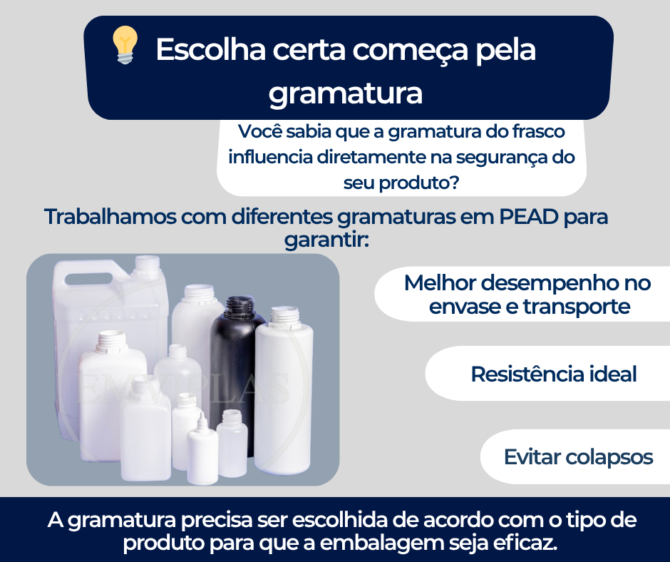 A Gramatura certa faz toda diferença Entenda por que a resistência do frasco deve ser compatível com o tipo de produto envasado. Leia mais [+]