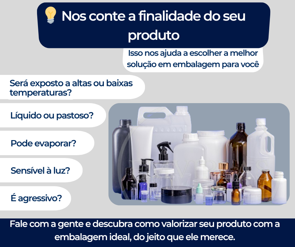 Nos conte a finalidade do seu produto Qual o seu produto? A embalagem certa depende disso! Leia mais [+]